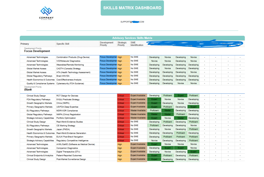 Transformed a complex skills intake process by designing an automated system in Smartsheet. Engineered a solution where staff self-report on 80+ skills via a customized form. The data is automatically transposed from a landscape intake format into a structured, portrait-oriented matrix using advanced formulas. This powers a dynamic dashboard with a heatmap visualization, providing an instant, at-a-glance view of organizational capabilities and skill gaps without manual intervention.